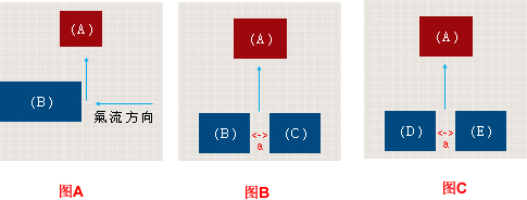 住宅正对面应当是开阔平缓的明堂,风也应是和煦的。倘若住宅前方刚好有建筑物半遮挡,那么气流碰到建筑物时将会改变流动方向及速度。 壁刀煞 假设(A)、(B)、(C)皆为一般住宅,蓝色箭头表气流方向。 在图A中,(A)建筑直接对着(B)建筑的侧面墙壁,当气流遇到(B)建筑时,气流会发生方向改变,形成一股强...
