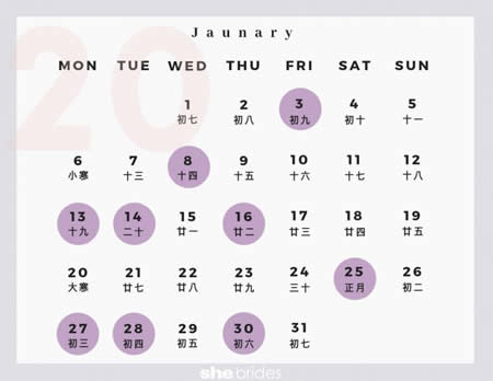 [专题]2020年结婚吉日一览表