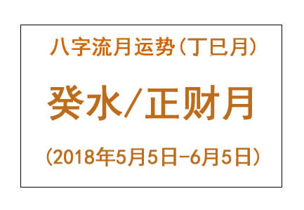 2018年八字丁巳月运势:癸水/偏财/正财月(流年正官) 八字流月运势:丁巳月癸水(2018年5月5日 – 6月5日) 水行人迎来收获之月 5月10日、5月11日、5月20日、5月21日、5月30日、5月31日,缴税就选这些比劫日吧! 上半月(5月5日 – 5月20日),丁火...