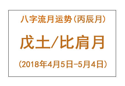 • 2018年八字丙辰月运势:戊土/比肩月 2018年八字丙辰月运势:戊土/偏印/比肩月(流年比肩) 八字流月运势:丙辰月戊土(2018年4月5日 – 5月4日) 丙辰月在上半月,当丙为主要气场时(4月5日 – 4月19日),从运势角度而言,对戊土来说这被称作“偏印”。 在这段时期,戊土之人在心态方面比较容易对事物形成... 2018-04-05