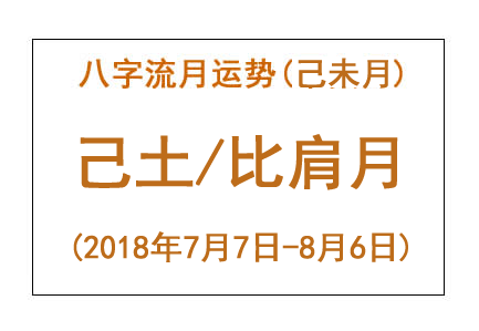 • 2018年八字己未月运势:己土/比肩月 八字流月运势:己未月己土(2018年7月7日 – 8月6日) 【己土】比肩月(流年劫财) 土行人 – 人脉拓展 恭喜今年运势较为不顺的己土之人,终于撑到年中啦。在比肩月里,生活能稍微安静一些。尽管外界的人事物仍会主动找上门来,但比肩的力量会促使己土的心态发生转变,能够将一部分... 2018-07-10