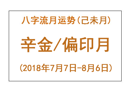 • 2018年八字己未月运势:辛金/偏印月 八字流月运势:己未月辛金(2018年7月7日 – 8月6日) 【辛金】偏印月(流年正印) 金行人 – 生活哲学 当辛金步入偏印月时,其情形与正印月形成鲜明反差。在这个月里,人们很容易邂逅一些奇特的人,遭遇一些难以名状的事情。实际上,这些也可视为贵人的一种,只不过属于逆境中的贵... 2018-07-10