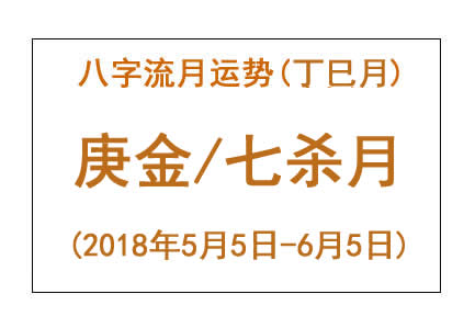 2018年八字丁巳月运势:庚金/正官/七杀月(流年偏印) 八字流月运势:丁巳月庚金(2018年5月5日 – 6月5日) 金行人 – 名声月 5/8、5/9、5/18、5/19、5/28、5/29 缴税就交给比劫日吧! 上半月(5/5 – 5/20),丁火作为主气,...