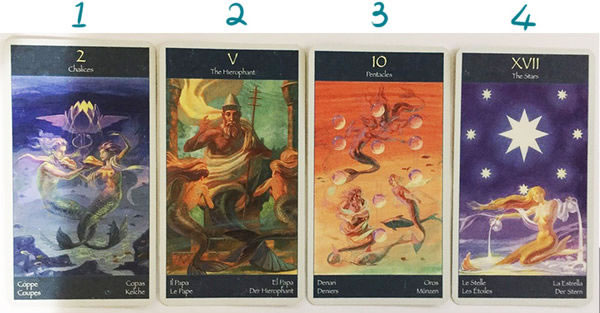 我们的生活难免会有机会面对不同的状况。当这样的状况来临时,你会如何面对呢?今天要分享的塔罗牌占卜,其测验的主题是“我会如何面对生活中的改变呢?” 请在心中默念这个问题三遍,然后从下面的四张牌中,凭直觉选择一张最有感觉的牌! (今天使用的美人鱼塔罗牌) -以下是牌义解释- 1.女祭司─关起门来努力自我...