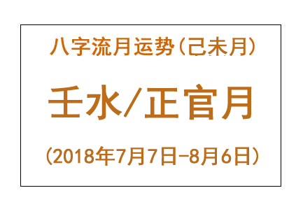 • 2018年八字己未月运势:壬水/正官月 八字流月运势:己未月壬水(2018年7月7日 – 8月6日) 【壬水】正官月(流年七杀) 水行人 – 责任承担 恭喜壬水朋友顺利挺到上半年的末尾啦!上个月,陆陆续续听闻一些壬水朋友不是莫名其妙地生病,且病情绵延许久;就是忙于照料家人,着实辛苦。各位朋友可要多多关心身边的壬水朋... 2018-07-10